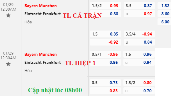 AEGoal chốt kèo bóng đá trực tiếp trận Bayern Munich vs Eintracht Frankfurt diễn ra lúc 00h30 ngày 29/01/2023 trong khuôn khổ giải VĐQG Đức sau khi dựa trên tính toán, chuyển động về kèo châu Á và đội hình ra sân của 2 đội.