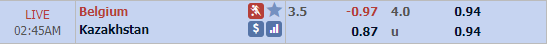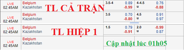 Kèo chấp 3 1/2 lúc 14h00 chiều ngày 08/06 của Bỉ được nhích lên thành 3 3/4 với điểm ăn 0.89 trước giờ bóng lăn chừng 40p. Mức tài xỉu 4 hòa với lợi nhuận cân bằng thời điểm chiều 08/06 cũng được tăng lên thành 4 1/4, thậm chí điểm ăn cho cửa tài thấp dưới mức 0.80 dần đẩy mức tài xỉu chính lên 4 1/2.