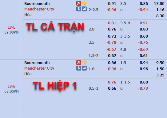 Tham khảo: Man City -3/4 Hiệp 1
