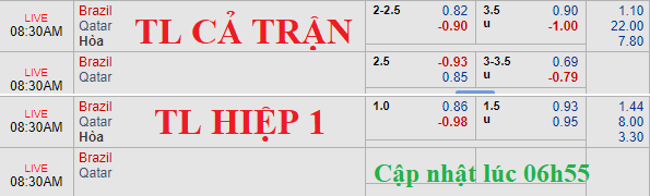 Brazil không còn giữ được kèo chấp 2 1/2 như đầu giờ chiều ngày 05/06, thay vào đó họ chỉ còn chấp 2 1/4 với điểm ăn ít (0.82). Trong khi đó, mốc tài xỉu không có biến động quá lớn khi vẫn giữ ở mức 3 1/2 với lợi nhuận thấp hơn ở cửa tài.