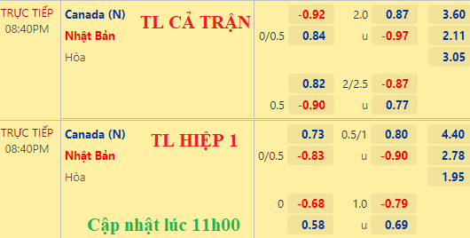 Chốt kèo trực tiếp trận Canada vs Nhật Bản (20h40):