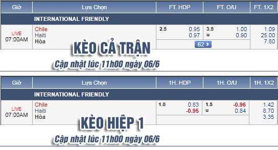 CHỐT KÈO TRỰC TIẾP trận Chile vs Haiti (06h00)