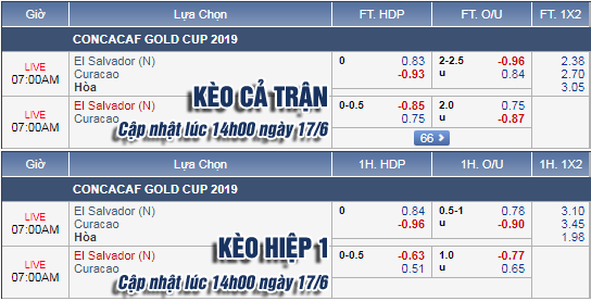 Kèo chính ở mức 0:0 ngày càng chứng kiến lựa chọn Curacao bỏ khá sâu. Theo đánh giá của giới chuyên môn, El Salvador dù không sở hữu ngôi sao thực thụ nào nhưng có chất lượng chuyên môn và sự hiểu nhau tốt hơn đối thủ. Hơn nữa, đây là trận đấu giữa 2 đối thủ trực tiếp trong cuộc đua giành vé đi tiếp nên khó chứng kiến kịch bản cởi mở. Nhất là khi nhà cái đã điều chỉnh tổng bàn thắng từ 2 1/4 xuống còn 2 hòa ở thời điểm hiện tại.