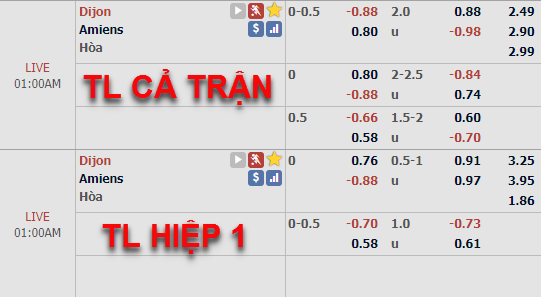 Trên sàn giao dịch châu Á, tỷ lệ chính của trận đấu vẫn được giữ ở mức chấp 1/4 của đội chủ nhà Dijon nhưng điểm ăn bên phía Amiens đã được điều chỉnh giảm so với thời điểm chúng tôi cập nhật chiều nay. Ở bên phía tỷ lệ tổng bàn thắng cả trận cũng diễn biến tương tự, kèo chính 2 hoà vẫn được giữ nhưng điểm ăn cửa ít bàn thắng đang có xu hướng giảm điểm.