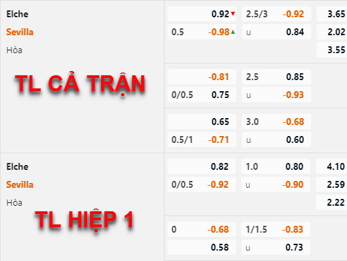 Sevilla vẫn duy trì mức chấp 1/2 trên sàn giao dịch châu Á hiện tại nhưng điểm ăn của cửa trên đã được điều chỉnh tăng so với lần chúng tôi cập nhật trước đây. Tỷ lệ tài xỉu của trận đấu cũng có diễn biến xuôi chiều khi mốc 2 3/4 vẫn là mốc chính của trận đấu nhưng điểm ăn của cửa tài được điều chỉnh tăng đôi chút.
