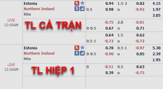 Tham khảo: Bắc Ireland -1/2 cả trận