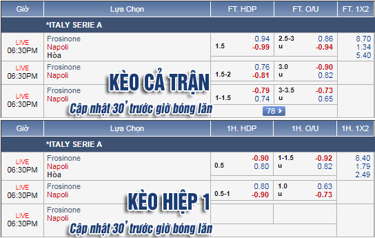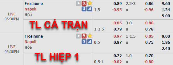 Trên sàn giao dịch châu Á, Napoli vẫn đang duy trì được mức chấp -1 1/2, bên cạnh đó điểm ăn cũng đã có những dịch chuyển theo hướng có lợi cho mã này khi có xu hướng giảm, tuy nhiên sự thay đổi là không đáng kể và vẫn còn đó rất nhiều nghi ngờ. Trong khi đó mốc tổng bàn thắng vẫn được duy trì ở mức 2 3/4 cùng điểm ăn thấp cho cửa Tài, thậm chí thời điểm trước đó còn chứng kiến điểm ăn cửa Tài giảm mạnh, với diễn biến như vậy, có thể hy vọng cho mốc trên ở trận này.
