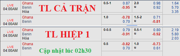 AEGoal.net chốt kèo trực tiếp trận Ghana vs Benin diễn ra lúc 03h00 ngày 26/6 sau khi dựa trên tính toán, chuyển động về kèo châu Á và đội hình ra sân của 2 đội.