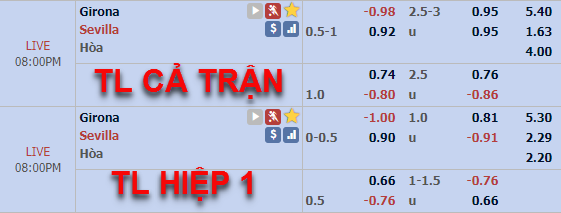 Hơn nữa, việc Sevilla vượt trội về chuyên môn lẫn thành tích chuyên môn trước Girona nhưng lại biến động bất lợi rõ ràng là tín hiệu rất đáng lo ngại. Khi cửa trên bị nghi ngờ, khả năng diễn ra trận đấu tưng bừng cũng bị ảnh hưởng nghiêm trọng. Nhà cái tỏ ra nhanh nhạy với chi tiết này khi điều chỉnh điểm ăn với lựa chọn TÀI 2 3/4 lên cao hơn hẳn so với thời gian trước đó.