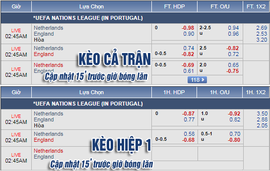 * Chốt kèo trận Hà Lan vs Anh (01h45)