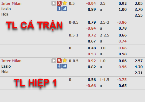 Tham khảo: Inter Milan -1/2 cả trận