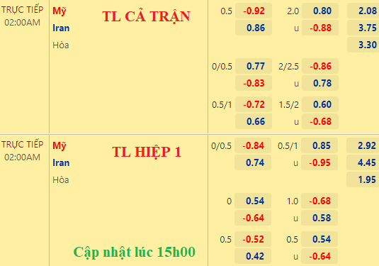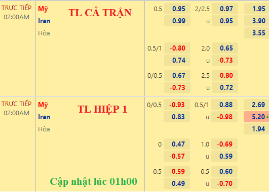 Chốt kèo trực tiếp trận Iran vs Mỹ (02h00):