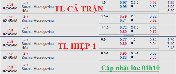 Tham khảo: Italia -1/2 hiệp 1
