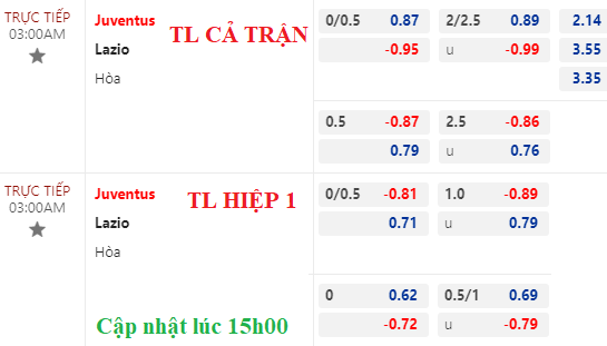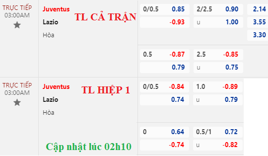 Chốt kèo trực tiếp trận Juventus vs Lazio (03h00):
