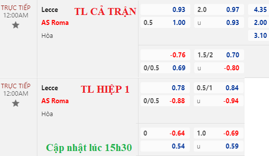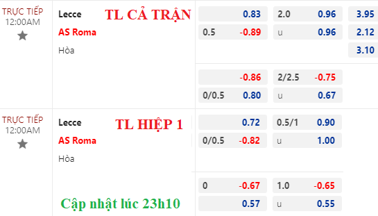 Dù được đánh giá cao hơn nhưng AS Roma mất giá trầm trọng khi kèo chấp hòa của họ ghi nhận điểm bỏ rất sâu, dần bị kéo về còn chấp đồng banh. Tài xỉu 2 hòa cân tiền vẫn được giữ nguyên và biến động handicap như vậy là rất bi quan với AS Roma.