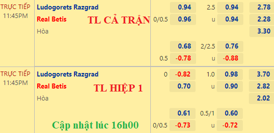 Tuy mất giá nhưng có thể hiểu cho điều này khi Betis không tung vào sân đội hình mạnh nhất. Dù vậy, đại diện của La Liga vẫn còn nhiều nhân tố chất lượng trong đội hình xuất phát và đẳng cấp của họ vẫn trên tầm chủ nhà. Hơn nữa, nhìn vào kèo hiệp 1 Betis chấp về giá thì cửa trên vẫn đáng tin. Vì vậy, nên đi ngược bài nhận định.