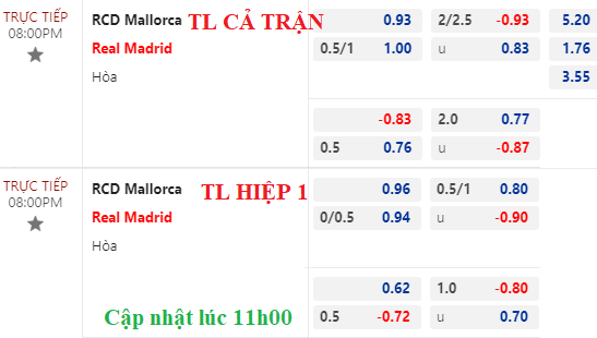 Tham khảo: Mallorca +3/4 cả trận
