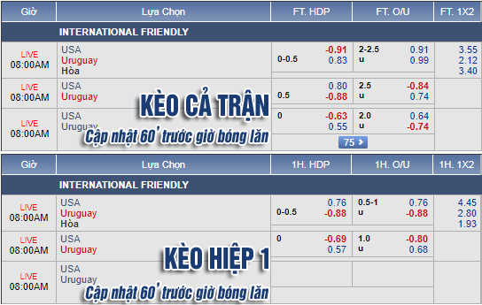 * Chốt kèo trận Mỹ vs Uruguay (07h00)