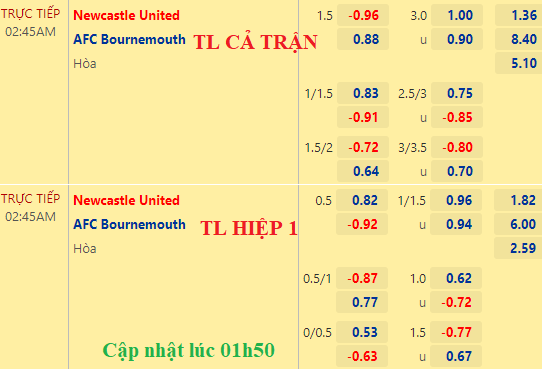 Chốt kèo trực tiếp trận Newcastle vs Bournemouth (02h45):