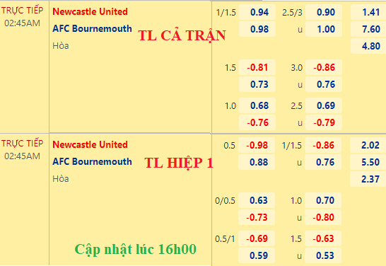 So với thời điểm chiều 20/12, Newcastle tăng giá lên chấp 1 1/2 dù điểm ăn bỏ đôi chút, trong khi tài xỉu cũng được kéo lên thành 3 hòa. Với đội hình ra sân gồm nhiều cầu thủ chất lượng như vậy, đặt niềm tin vào "chích chòe" trận này là lựa chọn hợp lý.