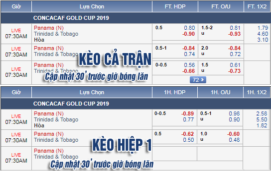THAM KHẢO: Panama (-1/2) cả trận