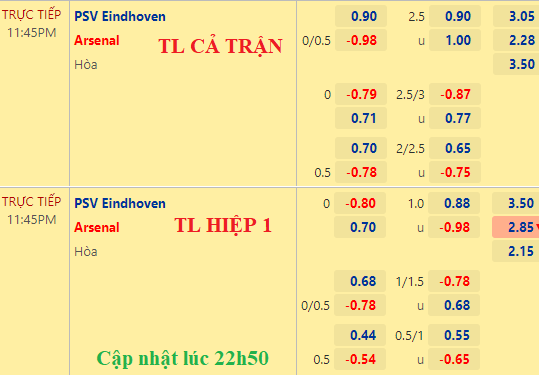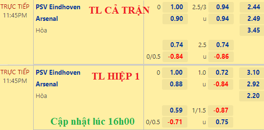 AEGoal chốt kèo bóng đá trực tiếp trận PSV Eindhoven vs Arsenal diễn ra lúc 23h45 ngày 27/10/2022 trong khuôn khổ vòng bảng UEFA Europa League sau khi dựa trên tính toán, chuyển động về kèo châu Á và đội hình ra sân của 2 đội.