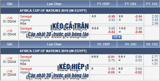 * Chốt kèo trận Senegal vs Algeria (00h00)
