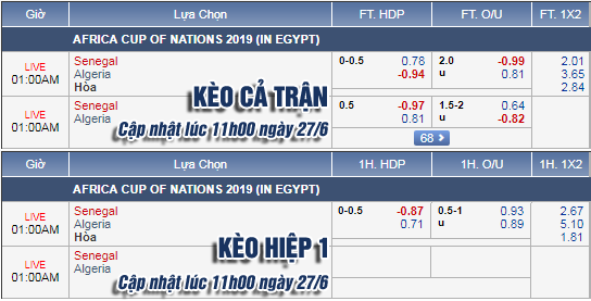 AEGoal.net chốt kèo trực tiếp trận Senegal vs Algeria diễn ra lúc 00h00 ngày 28/6 sau khi dựa trên tính toán, chuyển động về kèo châu Á và đội hình ra sân của 2 đội.