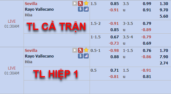 Chốt kèo: Sevilla -1 3/4 cả trận