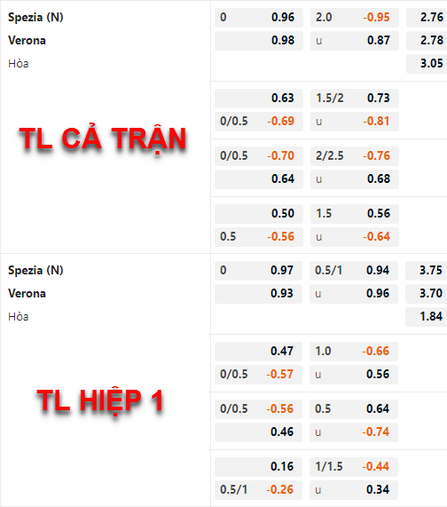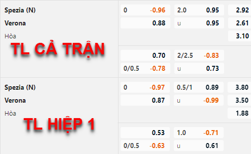 Tỷ lệ chính của trận đấu vẫn được nhà cái châu Á duy trì ở mức 0:0 như trước đây nhưng hiện tại điểm ăn của Spezia đã được điều chỉnh giảm không ít. Trong khi đó tỷ lệ tài xỉu của trận đấu tiếp tục có xu hướng giảm điểm, mốc 2 hoà vẫn là mốc chính nhưng điểm ăn của xỉu đã giảm tương đối nhiều so với lần chúng tôi cập nhật trước.