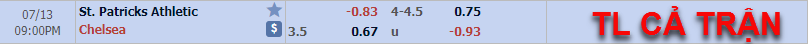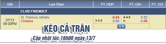 AEGoal.net chốt kèo trực tiếp trận St Patrick's vs Chelsea diễn ra lúc 20h00 ngày 13/7 sau khi dựa trên tính toán, chuyển động về kèo châu Á và đội hình ra sân của 2 đội.