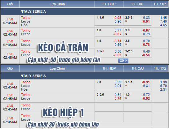 * Chốt kèo trận Torino vs Lecce (01h45)