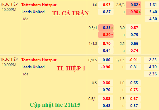 Trên sàn châu Á, Tottenham lên chấp 1 hòa nhưng điểm bỏ, tài xỉu lại giảm từ 3 hòa dần về 2 3/4. Tuy kèo cả trận tăng nhưng kèo hiệp 1 Tot vẫn chỉ chấp 1/4. Chỉ số châu Á như vậy là không đáng tin cậy với cửa trên.