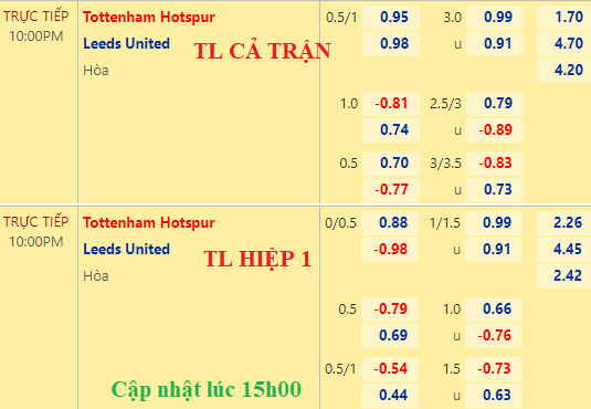 AEGoal chốt kèo bóng đá trực tiếp trận Tottenham vs Leeds United diễn ra lúc 22h00 ngày 12/11/2022 trong khuôn khổ giải Ngoại hạng Anh sau khi dựa trên tính toán, chuyển động về kèo châu Á và đội hình ra sân của 2 đội.