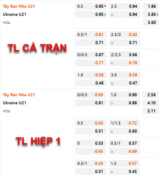 Tỷ lệ chấp của U21 Tây Ban Nha có xu hưởng giảm điểm thời gian vừa qua, hiện tại mức chấp chính của cửa trên đã được kéo xuống mức 1/2 từ mức 3/4 ở lần chúng tôi cập nhật lần trước. Tương tự tỷ lệ tài xỉu đã có điều chỉnh giảm, mốc 2 1/2 vẫn là mốc chính của trận đấu nhưng điểm ăn của cửa xỉu giảm không ít so với trước đây.