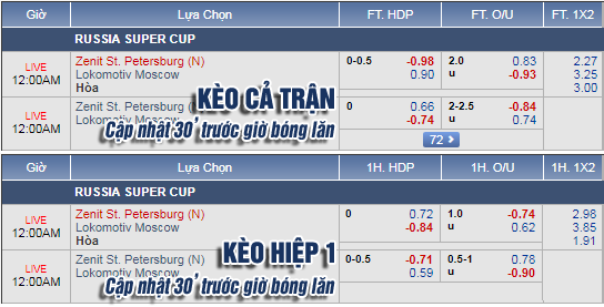 So với thời điểm cập nhật lúc 13h00 ngày hôm nay, tỷ lệ chính của trận đấu đã thay thế từ hòa được thua lên mức chấp 1/4 cho Zenit ở thời điểm sát giờ bóng lăn, kèm theo đó là thang lợi nhuận không quá chênh lệch. Đây rõ ràng là tín hiệu tích cực với thầy trò HLV Semak trong bối cảnh họ gặp bất lợi nhiều hơn về sân bãi. Bên cạnh đó, với mốc tổng bàn thắng cả trận đã hạ từ 2 1/4 xuống chỉ còn 2 hòa, khả năng có nhiều bàn thắng ở trận này là không cao.