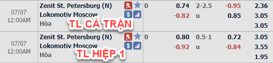 AEGoal.net chốt kèo trực tiếp trận Zenit vs Lokomotiv Moscow diễn ra lúc 23h00 ngày 06/7 sau khi dựa trên tính toán, chuyển động về kèo châu Á và đội hình ra sân của 2 đội.