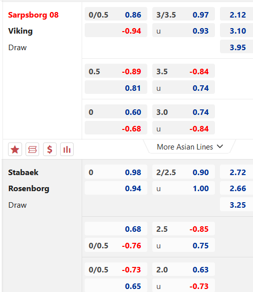 Lợi thế sân nhà chưa đủ để Sarpsborg có đà bứt phá trên sàn giao dịch châu Á khi chỉ có kèo chấp tối thiểu 1/4. Cùng với đó là kèo bàn thắng cũng bị đánh giá khá thấp với kèo 2 1/4 không mấy hứa hẹn cho diễn biến tưng bừng bàn thắng.