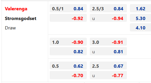 Chốt kèo: Valerenga -3/4 cả trận. Xỉu 2 3/4 cả trận