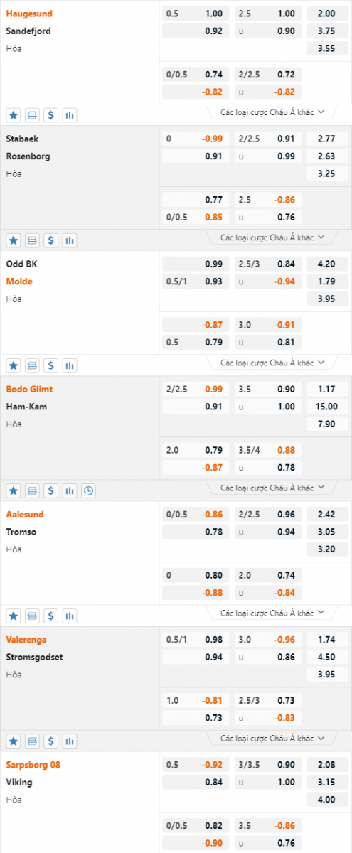 Phải làm khách trên sân của đối thủ đáng gờm như Odd BK nhưng Molde lại được đánh giá cao với kèo chấp lên đến 1 hòa. Đáng chú ý, đây là chỉ số được niêm yết ngay từ đầu phiên và duy trì được sự ổn định đến sát giờ bóng lăn.