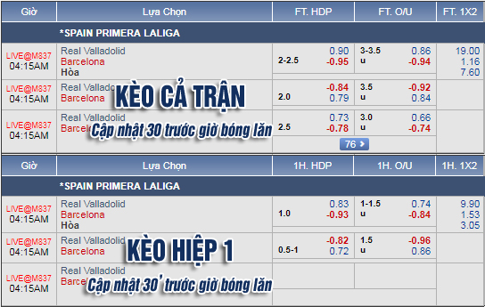 AEGoal.net chốt kèo trực tiếp trận Valladolid vs Barcelona sau khi dựa trên tính toán, chuyển động về kèo châu Á và đội hình ra sân của 2 đội.