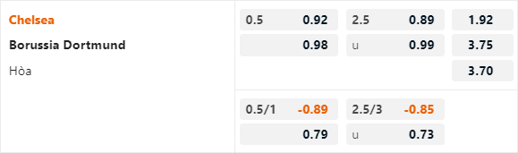 Tỷ lệ tài xỉu của trận đấu đang được nhà cái châu Á công khai ở mức 2 1/2 và điểm ăn ít bên phía cửa tài. Đây là mức tài xỉu không cao so với lối chơi tương đối cởi mở của Dortmund, nhưng hoàn toàn hợp lý ở trận đấu này. Bởi đội khách nhiều khả năng sẽ nhập cuộc một cách thận trọng hơn trên đất Anh khi họ đã có lợi thế dẫn bàn, trong khi việc ghi bàn hiện tại không phải là việc đơn gian với hàng công của Chelsea. Xỉu sẽ là lựa chọn đáng lưu ý ở kèo tài xỉu.