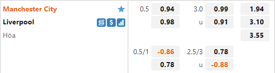 Man City hiện tại được nhà cái đánh giá cao hơn với tỷ lệ chấp 1/2 trên sàn giao dịch châu Á. Đây cũng là mức chấp thường thấy của Man City trong lịch sử đối đầu của hai đội. ặc dù luôn được đánh giá cao hơn đối thủ nhưng Man City giai đoạn này lại không có kết quả tốt khi đối đầu với Liverpool, cụ thể đội chủ nhà thua cả 3 cuộc đối đầu gần nhất. Nếu tính theo kết quả trên sàn giao dịch châu Á còn tồi tệ hơn khi thầy trò HLV Pep Guardiola thua kèo tới 6/7 trận gần nhất khi đối đầu với Liverpool.