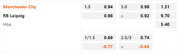 Phân tích tỷ lệ trận Man City vs RB Leipzig (03h00)