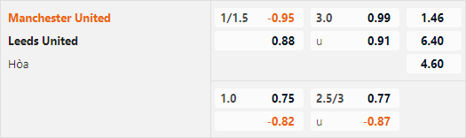 Với lợi thế sân nhà và lực lượng vượt trội Man Utd đang được nhà cái châu Á đánh giá ở cửa trên với tỷ lệ chấp 1 1/4 trận này. Đây là mức chấp nhỉnh hơn đối chút so với cuộc đối đầu tương tự gần nhất. Ở mùa giải trước Man Utd chỉ có tỷ lệ chấp 1 hoà khi tiếp đón Leeds Utd nhưng họ đã dễ dàng giành chiến thắng trận đấu đó.
