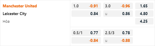 Phân tích tỷ lệ trận Man Utd vs Leicester (21h00)