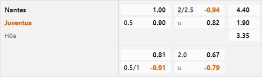 Mặc dù Juventus được dự đoán có thể giải quyết trận đấu ngay trong 90 phút thi đấu trận này nhưng nhiều khả đội khách vẫn sẽ gặp không ít khó khăn khi đối đầu với hàng thủ của Nantes. Lựa chọn cửa xỉu sẽ là phương án hợp lý ở kèo tài xỉu.