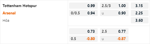 Hiện tại Arsenal đang được nhà cái châu Á đánh giá ở cửa trên với tỷ lệ chấp 1/4 trận này. Đây là lần đầu tiên Arsenal được đánh giá ở cửa trên khi làm khách của Tottenham kể từ năm 2015. Theo những thống kê trong quá khứ thì Tottenham đang hoàn toàn chiếm ưu thế. Spurs thắng 6/7 lần tiếp đón Arsenal gần nhất.