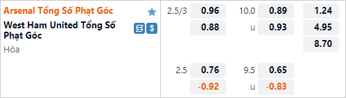 Soi kèo tài xỉu, phạt góc trận Arsenal vs West Ham (03h00)