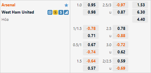 Hiện tại Arsenal duy trì tỷ lệ chấp 1 hoà và mức điểm ăn tương đối cân bằng trên sàn giao dịch châu Á. Đây là mức chấp cao hơn hẳn mức chấp 1/2 của các pháo thủ trong cuộc đối đầu tương tự của mùa giải trước. Arsenal cũng thường có kết quả tốt khi tiếp đón West Ham với chuỗi 7 trận thắng liên tiếp.